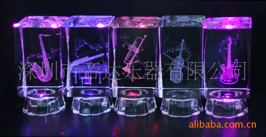 奖杯 音乐礼品 小提琴 吉他 萨克斯水晶灯 水晶内雕 可贴牌订做