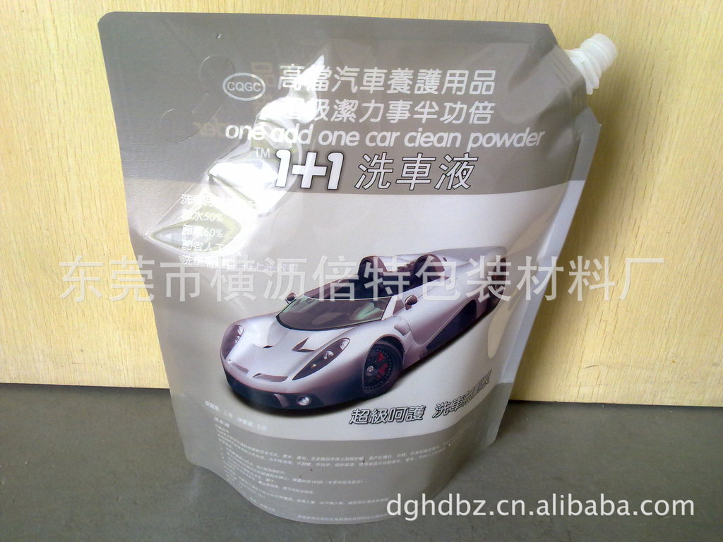 洗车液吸嘴自立袋可以印自己的LOGO联系人:毕经理13751368949可以免费提供袋样