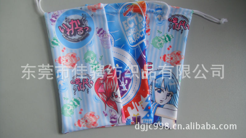 超细纤维材质经过特殊加工精制而成眼镜袋,表面细腻柔软,材料有可定全涤,涤锦复合,低碳环保,吸水吸油去尘,可做磨毛与平纹,双磨,单磨,可提供检测报告。可提供转移印刷、丝网印刷、烫压等印刷方式,将LOGO印在眼镜袋上,更直观,环保.可按客LOGO做货,图案鲜活生动,具有极强宣传效果与品牌效应,环保吸水吸油去尘且不影响容纳及擦拭效果.主要用于树脂,电子,MP3,相机,手机,LSI、IC计算机、办公用具,眼镜,镜片,激光唱片、录音、录像磁头、珠宝首饰,钟表等,