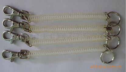 主营产品有:发圈、塑料弹簧绳、塑料弹簧手机绳、手机擦用塑料弹簧、手圈、QQ圈、塑料弹簧钥匙扣、钥匙链、塑料钥匙吊牌、工业用塑料弹簧配件等。优质塑胶弹簧线弹性好,伸缩性强,接头牢固,最佳连接配件.此类产品有普通焊口\平线焊口\啤五金三种方法。适用于手机饰品、文具、渔具、健身器材、五金工具、服装配件、 筹码及各种促销礼品、广告礼品。单线直径,外圈大小,颜色,长短等可按客户要求制造。欢迎垂询指导,来样定做