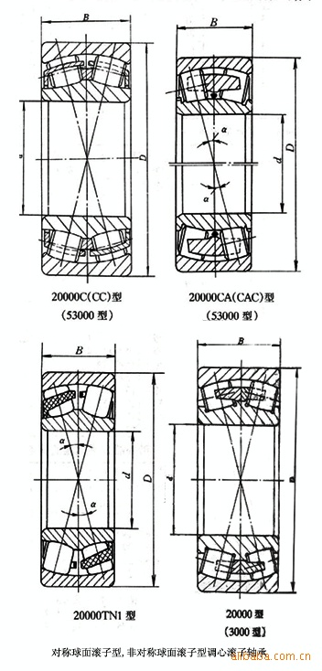 调心滚子轴承为(CA/W33,CC/W33,E,CCK/W33)