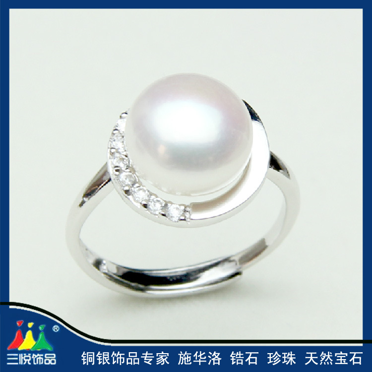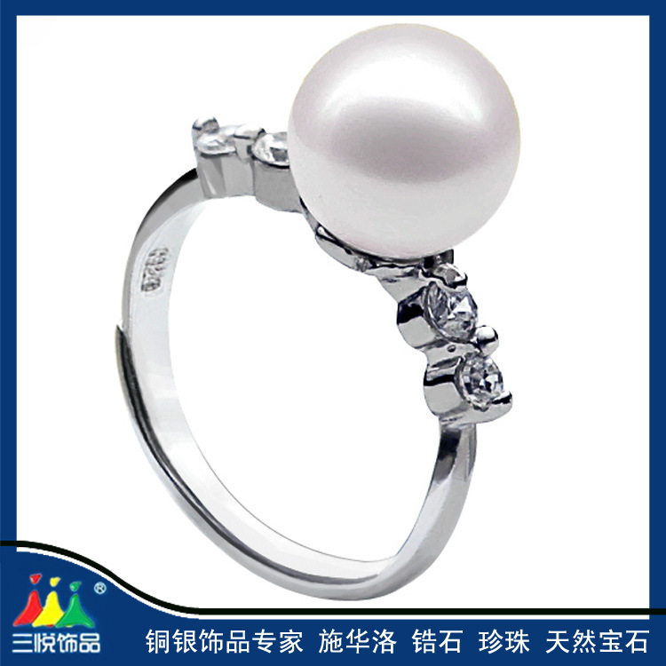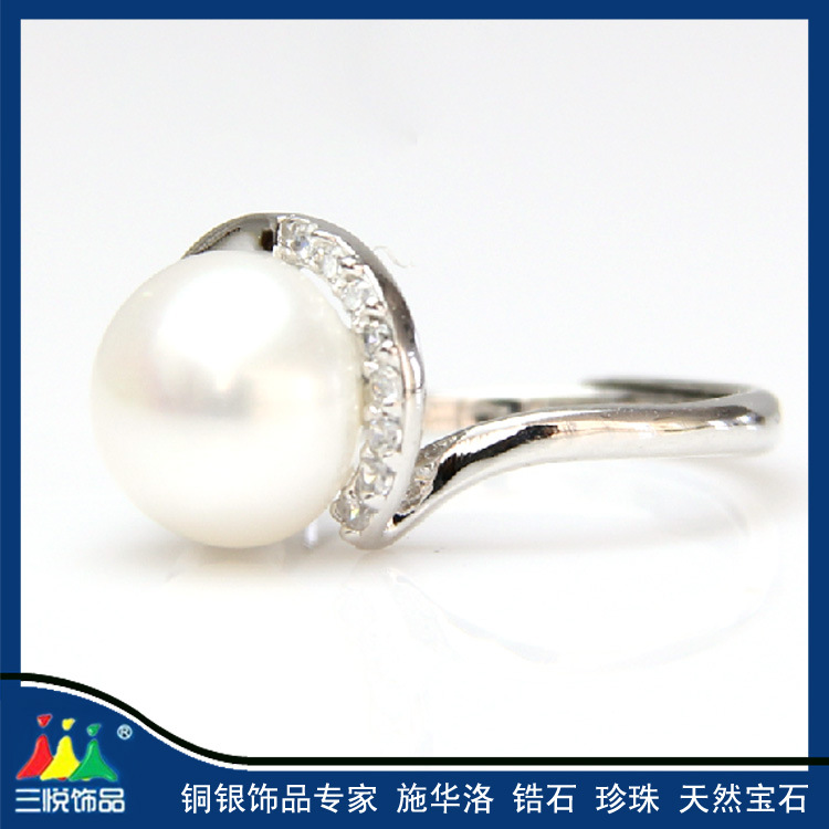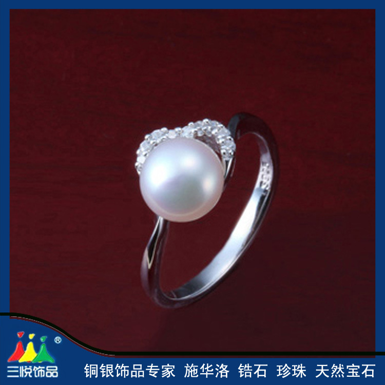 加工定做工厂 类微镶锆石戒指 女士 珍珠戒指 925纯银戒指