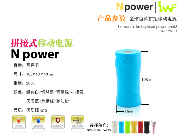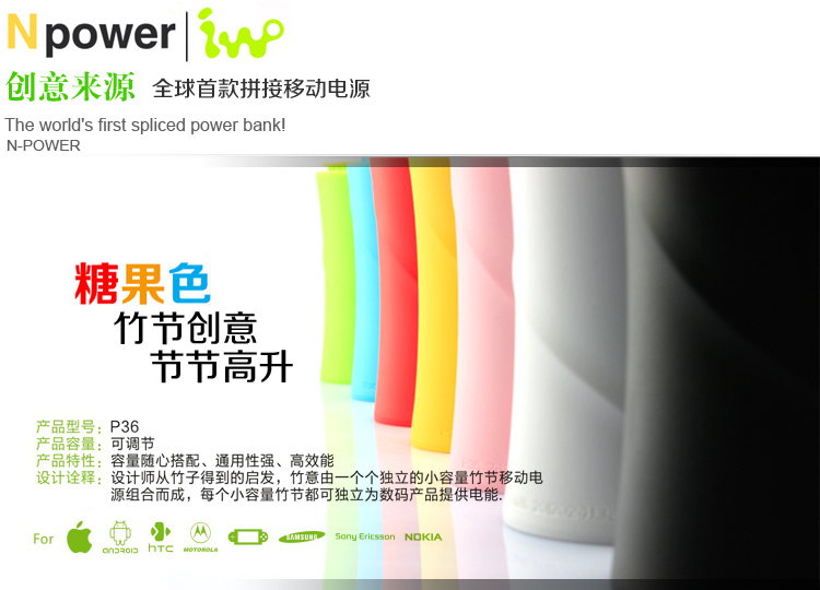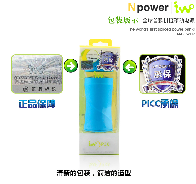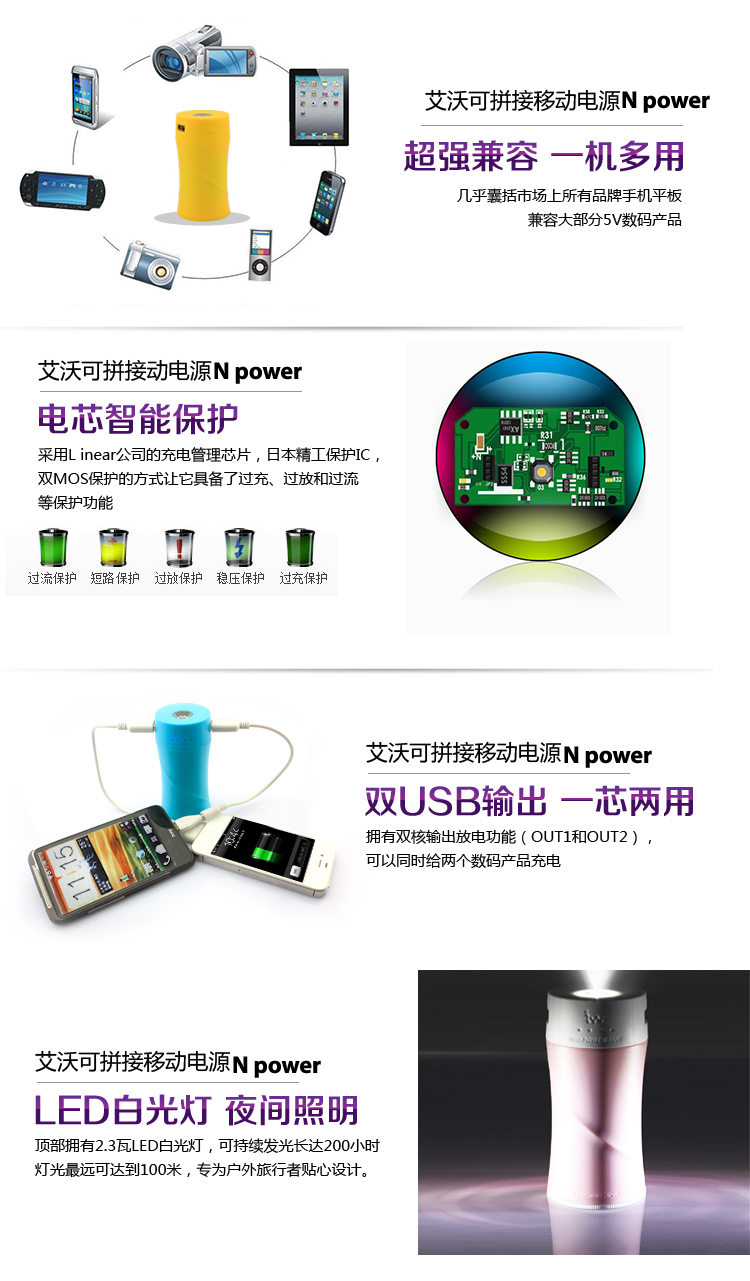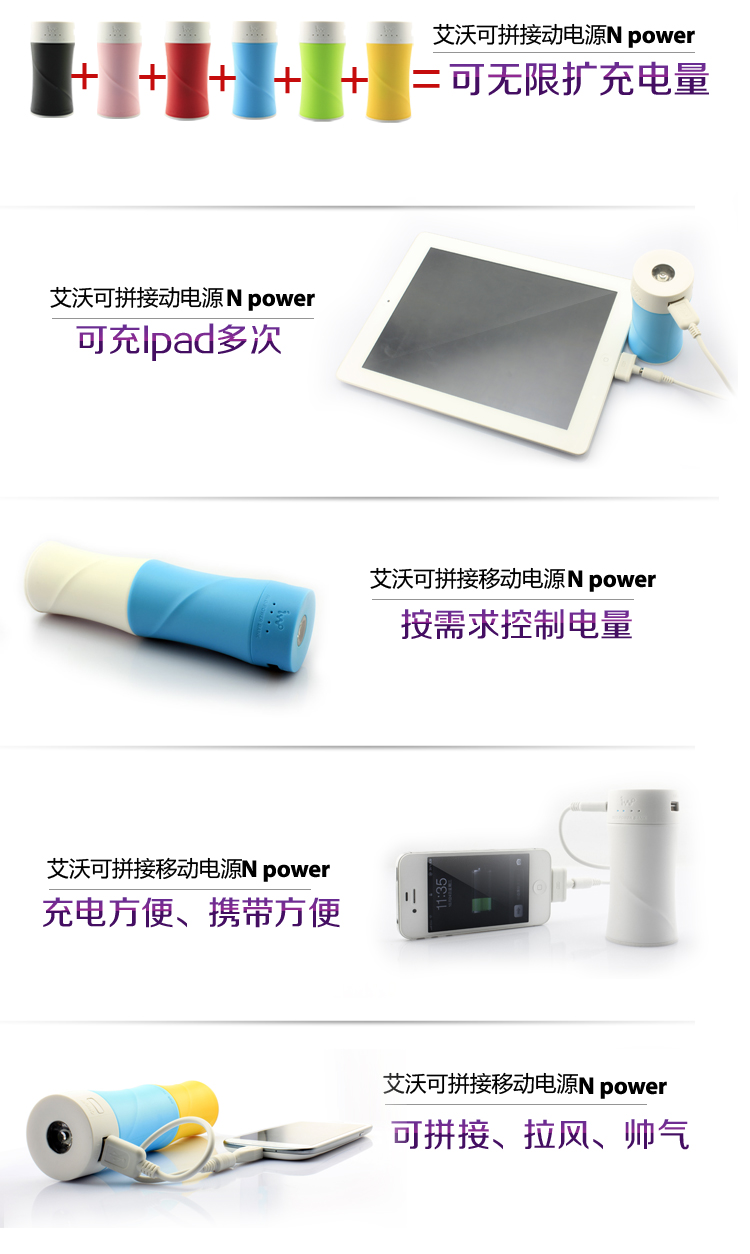 会议礼品 艾沃移动电源 P36 7800毫安 iphone5接头选配 无限拼接
