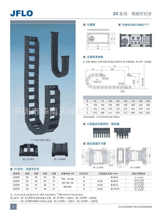 弯曲半径:R55|R75|R100|R125|R150|R175|R200|R250