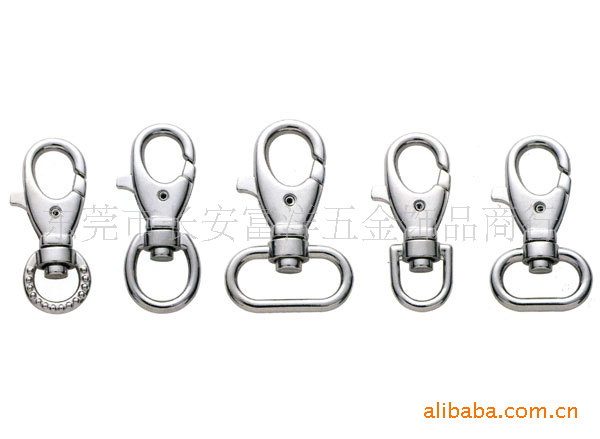 富洋五金专业生产锌合金勾扣,钥匙扣、钥匙圈、蟹扣、狗扣、龙虾扣、D字扣、日字扣、8字扣、井字扣、钥匙链、线扣、爬山扣、羊眼、塑胶扣、双圈、单圈、活动扣、葫芦扣、D扣、方扣、日字扣、蛋形扣、拉心扣、针筒扣、朱胆扣、三角扣、梅花扣、吊环扣、螺旋锁扣、蝴蝶扣、钩扣、弹簧扣、匙扣、线扣、D扣、三角扣、方扣、葫芦扣、拉心扣、银包扣、狗扣、锌合金扣、标牌、鸡眼、撞钉、磁钮、磁铁、开口圈、闭口圈、双圈、羊眼、合叶、挂钩、S钩、衣架钩、弹簧、螺丝、车轴、车轴拍头、钢珠、铜珠、车床件、钢丝绳等五金饰品配件。