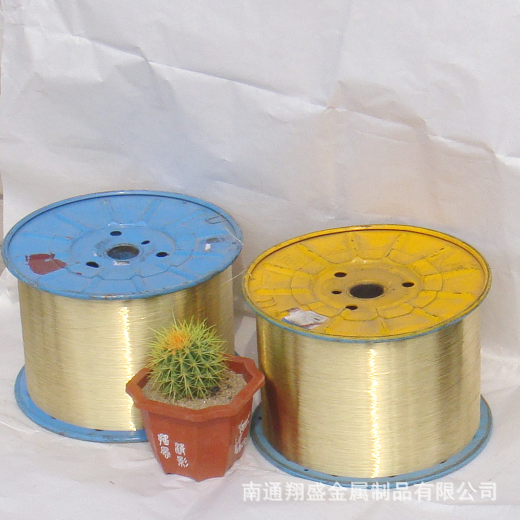 本公司专业生产镀铜钢丝,我们以优质的钢丝和无氧铜为原材料,确保生产最优的产品。我们采用先进的高速拉丝机,将产品丝径精确地控制在+0.02mm的公差范围之内。同时,我们生产中采用进口拉丝油,生产出来的钢丝表面光洁亮丽,抗氧化时间长。 1)我公司生产的镀黄铜钢丝均选用沙钢72A或者宝钢82B的材质 2)我们镀黄铜钢丝的规格为0.12mm-1.6mm之间,其中0.12mm-1.0mm均可用BS60工子轮(铁轴)包装,每盘净重约为25kg-30kg,0.4-1.6mm的也可捆丝包装,每捆重量为50kg左右。 3)其中0.2mm-0.7mm的镀黄铜钢丝也称为胶管钢丝,抗拉强度为2450-3250Mpa,主要用于橡胶软管增强。我们镀铜层采用的是铜锌合金,其中铜层比例为68%+4%,锌层比例为32%+4%。 这样镀铜层更加稳定,跟胶管的粘附性强。 4)我们也生产0.12mm-0.4 mm的镀黄铜钢丝用于钢丝刷其主要优点是,具有一定的耐磨性,镀铜层不易脱落。由于镀铜层稳定,强度大,因此我公司生产的镀黄铜也可用于只做弹簧,弹性好,不易生锈。我们的镀铜钢丝都参照国标C组的抗拉强度,因此也可用于pvc、软管及风管的制造等.