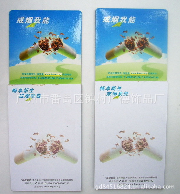 6)磁性便签本:采用下面软胶磁铁+上面铜版纸四色印刷裱光膜+便签本,或是单独便签本,便利本。