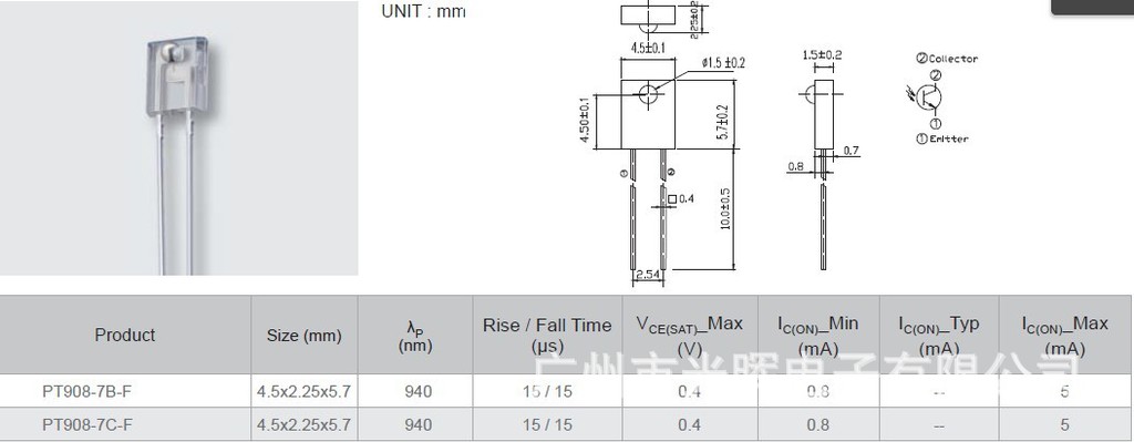 PT908-7C-F是一个光电晶体管微型封装