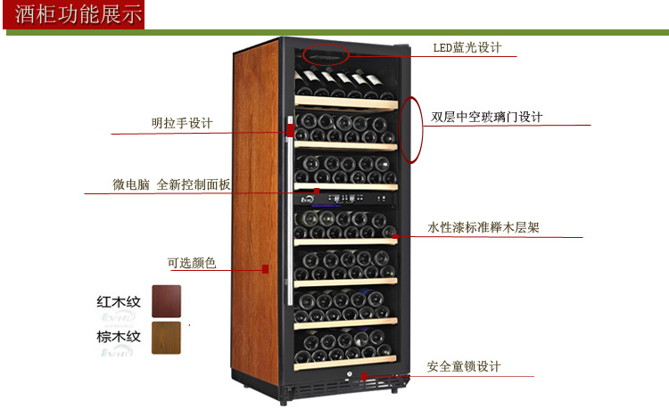 绿菱 120支装红酒柜 恒温红酒柜 压缩机红酒柜 实木酒柜 双温酒柜
