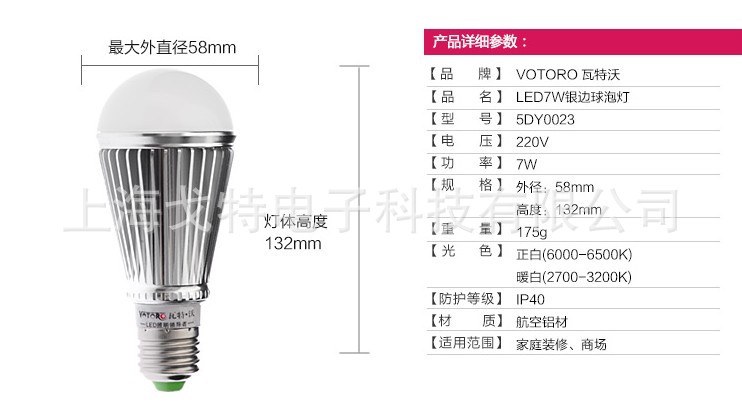 LED灯泡 节能灯 球泡灯 螺口灯 7W