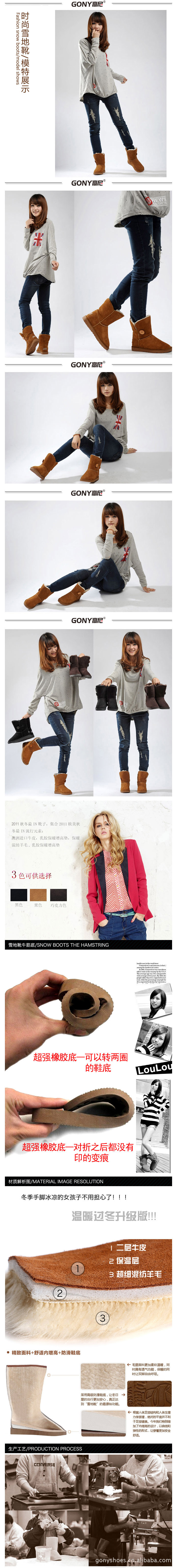 高尼品牌/女士羊毛内里时尚雪地靴/防水/厚底/女式内增高鞋靴子