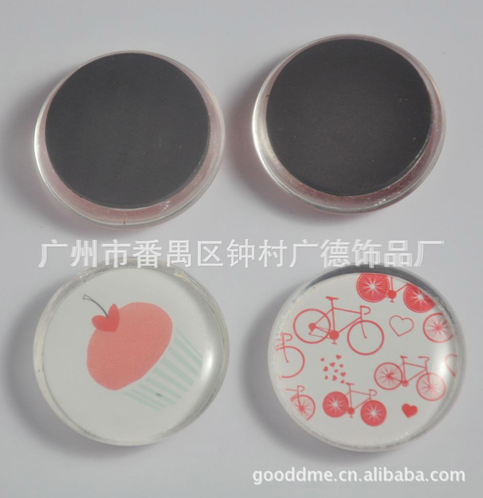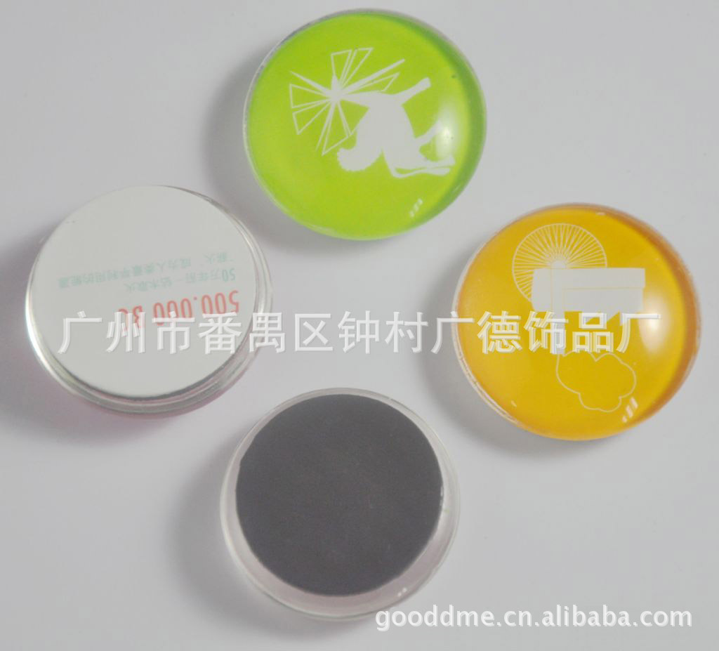 1)表面为透明水晶玻璃,中间是亮丽的彩色印刷纸,加背面磁铁,造型新颖,款式精美,高档