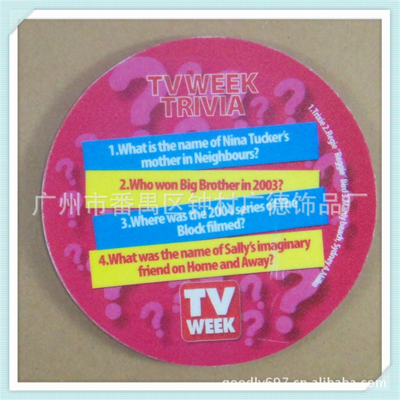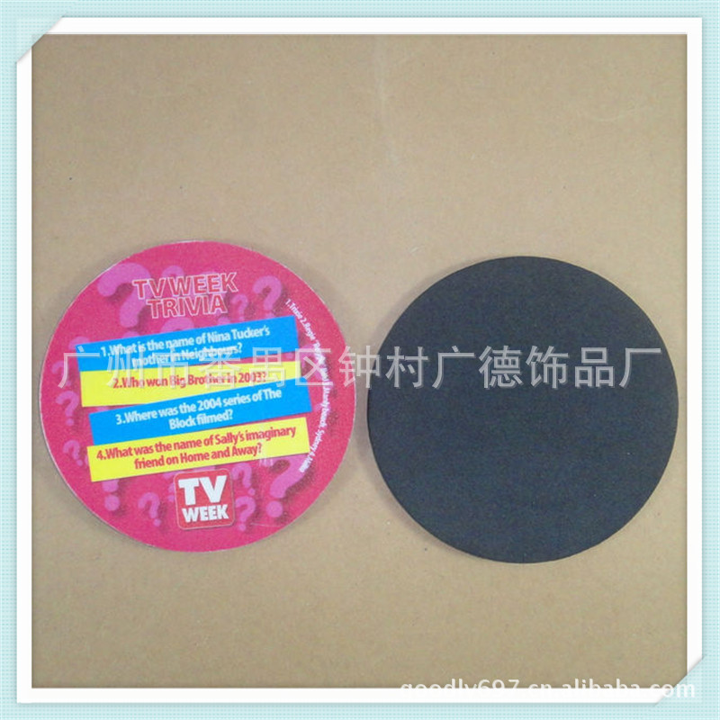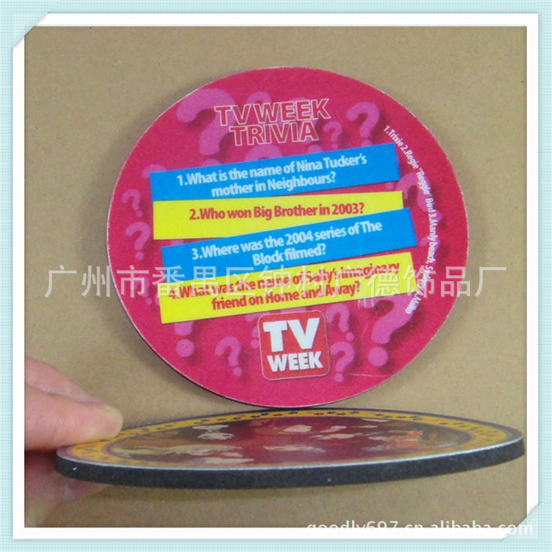 其它同性质产品 | 1.软胶pvc杯垫 2.软木杯垫 3.中纤板软木杯垫 4.灰板纸杯垫 5.pp杯垫 6.吸水纸杯垫 7.马口铁杯垫 8.橡胶杯垫 |