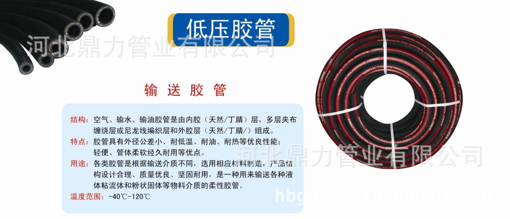 【产品分类】我公司产品品种繁多,规格齐全,其主要可分为:1.用于液压传动系统的高压钢丝、编织胶管、超高压缠绕胶管、喷沙管、耐高温胶管、树脂管、高压风管、耐油、酸、碱食品胶管等20多个品种。2.我公司是不锈钢金属软管、不锈钢金属波纹补偿器系列产品的生产厂家,产品具有耐腐蚀、耐高压、柔软性好、设计新颖、外形美观、安全可靠等优点。被广泛应用于钢铁、机械、冶金、化工、电力、热力、交通。3.用于石油钻探系统的高压钻探胶管。4.在压力作用下输送各种物料用胶管,如输水、输送压缩空气、喷沙、输送蒸汽等胶管。5.排吸两用途胶管。如排吸水、排吸泥等用途胶管。6.各种橡胶、塑料、尼龙、聚胺脂、聚四氟制品。 我们的经营宗旨是:“科学诚信、追求卓越、服务为本、互利共赢”。目前,本公司产品均已通过国家技术鉴定,产品符合国家和部颁标准并已实现标准化、系列化。同时我公司可以根据用户要求制定所需产品。热烈欢迎海内外朋友光临我公司,洽谈业务,增进友谊,我们将为您提供至诚至上的服务。 【产品质量】本公司是通过ISO9001:2000认证企业。从产品设计、研发、原料采购、生产、销售等全过程严格按ISO9001:2000质量管理体系贯彻运行。以科技创新为本,严细务实,高度重视产品质量,严格实施三级检验制度(即自检、车间检、出厂检),确保产品出厂百分百合格率,并且持续改进提高产品质量和售后服务,确保产品稳定、高效地满足广大顾客的需求。
