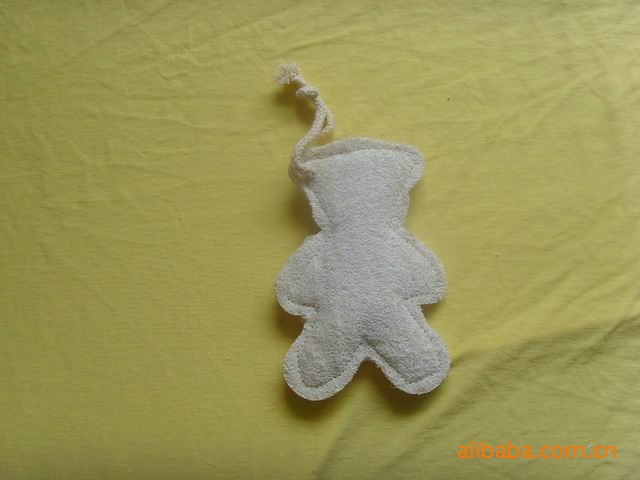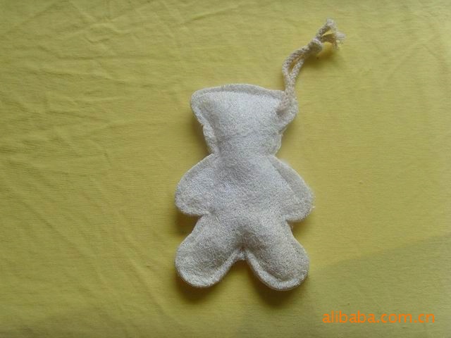 下图为丝瓜络卡通沐浴擦的正面,是采用天然的丝瓜络为原材料。