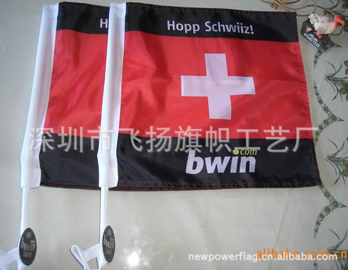 旗帜规格:1#旗 288cm × 192cm;2#旗 240cm × 160cm;3#旗 192cm × 128cm;4#旗 144cm × 96cm;5#旗 96cm × 64cm; 6#旗 30cm × 20cm;7#旗 21cm × 14cm;8#旗 15cm × 10cm。也可 根据客户要求尺寸定制。印制:热转印(ublimation)水印(DYEING)和涂料(PIGMENT)均可制作。产品防水,防晒,防火阻燃,色牢度高。