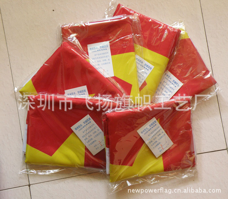 旗帜包装:每一面旗帜装一塑料袋(POLYBAG),然后再装出口外箱,送到机场,港口,再出口世界各地!