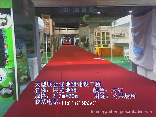 展览地毯批发 15901712803上海华龙地毯有限公司主营展览地毯、覆膜地毯、阻燃地毯、防火地毯、拉绒地毯、展会地毯、圈绒地毯、办公地毯、工程地毯、地毯胶、防水毯、防水板、复合膜、土工布、土工格栅等产品,成立了专业的施工队伍,拥有地毯批发、销售、施工、维护、撤场、回收等一条龙服务,蒋艳红期待您的咨询与合作!地址:上海市闵行区纪鹤路596弄50号咨询热线:021-61840016 18616693306