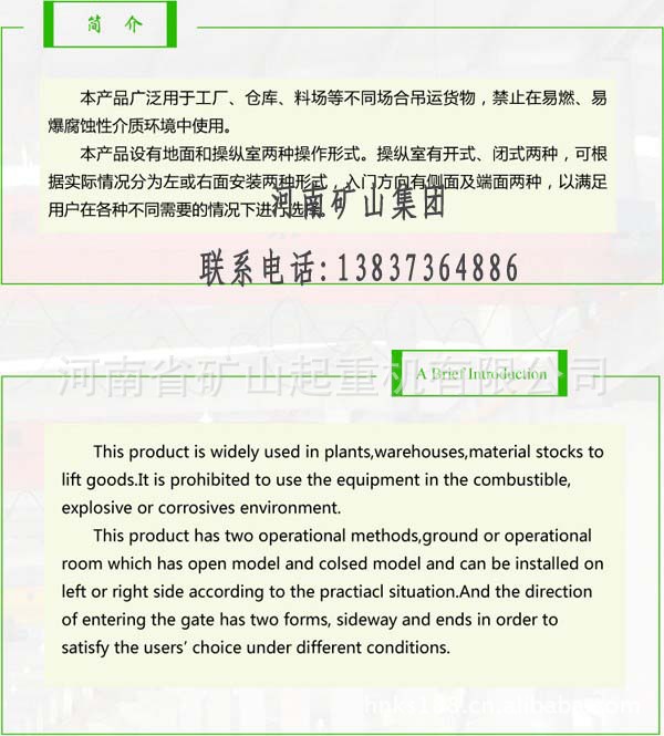 1.一般性技术安全要求: (1)使用行车必须遵守本指引; (2)应用经过培训的专业人员负责操作本机,非专业人员不得擅自动用; (3)本机最大起重量为5吨,不得用本机拖拉、起吊超过5吨的物体; (4)行车作业前,操作员必须先做例行检查,特别留意所有紧固螺栓、行走轮、轴链等重要部位是否正常,并以空车作前后、上下、左右动作,无异常时方可正式投入使用; (5)行车不带负荷运行时,吊钩必须升起至少超过人的高度;带负荷动作时,重物升起的高度至少超过动作行线路上最高阻碍物0.5米; (6)严禁运行的重物从人的头上越过,所有在行车作业范围内工作的人员必须戴安全帽; (7)禁止将工具、配件或其它物件随意摆放在行车上;作业时,禁止任何人逗留在行车上; (8)行车上所有的电器设备都必须有接地装置,停机或检修时必须断开电源; (9)大风时行车禁止作业,并须将行车锁定在路轨上。 2、安全操作指引: (1)操作员应了解行车的基本性能、用途、装备;能正确操作和掌握一般的保养技术要素; (2)开动前,在断电情况上先作环境检视,确定无阻碍后方可合闸启动; (3)行车运行中要随时观察周围情况,避免与车辆、人员及其它物件发生碰撞; (4)严禁超载起吊; (5)保持垂直起吊,不准以移动行车来拖动重物; (6)留意电缆线不要被重物压、撞或磨损; (7)除非用以避免紧急事故,不得以逆向操作来强行制动; (8)收工或停电时必须断开总电源; (9)工作时操作员不得擅离职守; (10)技术工作时,吊钩上不得有重物,必须升高吊钩,断开电源,关好电箱。 3、检修保养: (1)每天例行保养由操作员执行。检查范围如下: 清除电器设备外部的积尘、污垢,用手探测电机、制动器发热是否正常, 检查转动外部分有无漏油,电线接头是否松动,发现任何异常情况须及时向总管报告,并安排机修员检查,修理; (2)每月保养由机修员执行、操作员参加。保养范围如下: 清除电器设备内部积尘、污垢,检查电机磁铁、继电器及接触器是否正常,检查并修理控制器与开关的触点; (3)每年检修由机修员执行、操作员参加。检修范围如下: 拆开各种电器设备进行清洁,检查各设备支架,清洗轴承并换油,检测电机定转子间隔,检测绝缘电阻,需要时干处理。排除所有故障,更换无法修复的部件。 |