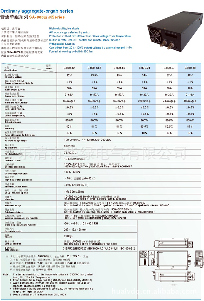 五、电源出厂以前加阻性负载进行测试,若需用在容性或感情为负载时,应事先在订货合同中的另以说明。