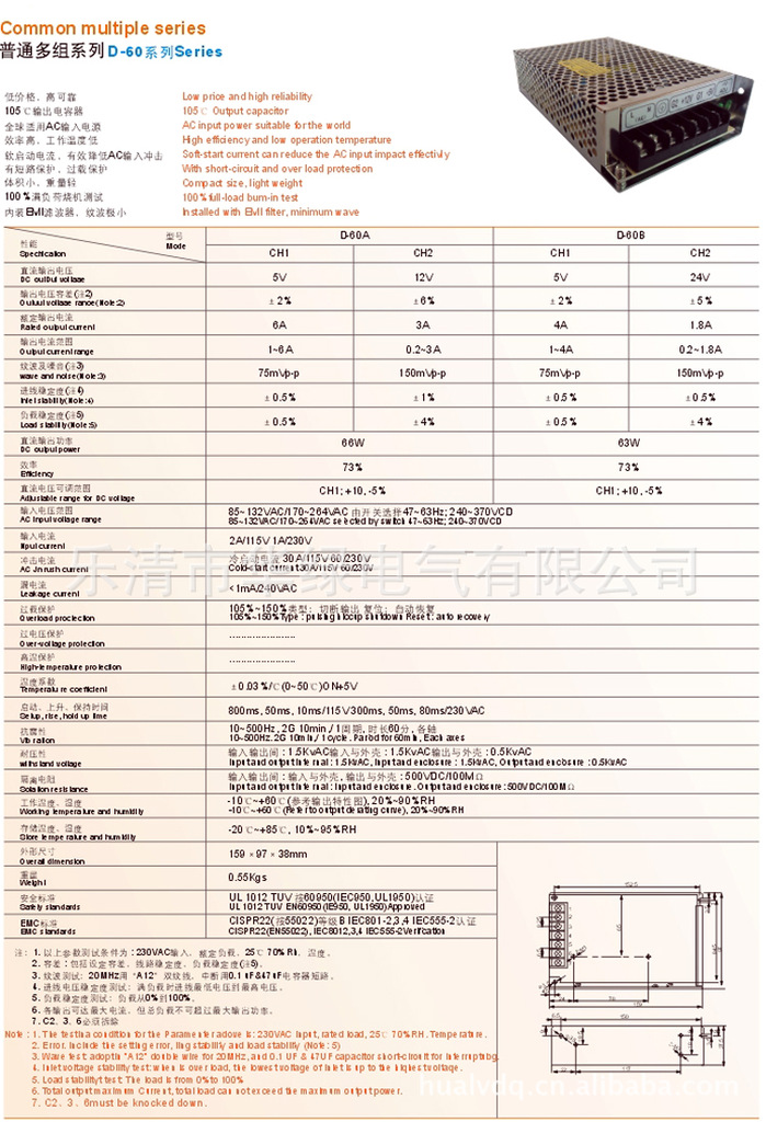 五、电源出厂以前加阻性负载进行测试,若需用在容性或感情为负载时,应事先在订货合同中的另以说明。