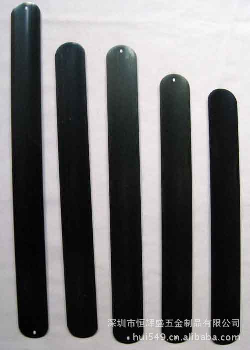 打孔钢片专业用于硅胶女式手表带钢片、迷你型手表带钢片、果冻硅胶表带钢片、玩具硅胶手表带、儿童卡通手表带钢片等,产品厚度为0.15MM,宽度为19MM,长度尺寸可以按客户要求订制,产品材质为65MN锰钢,颜色:黑偏蓝,该产品采用硅胶加钢片,广泛使用在礼品行业,玩具行业,硅胶制品行业,长度宽度精确到0.02毫米,切断处无毛刺。如图: