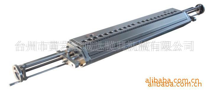 复膜(淋膜)模头:·模头标准宽度:1100mm-500mm可调节、1300mm-600mm可调节、 1500mm-800可调节、1700mm-1000mm可调节、 2000mm-1200mm可调节、2500mm-1800mm可调节·具有消除厚边功能的内堵式装置·制品厚度范围:0.005-0.1m任意调节·模头加热方式:不锈钢加热棒区内加温或鑄板分区外加温·模唇全推式微调结构·制品精度可达±2%以内