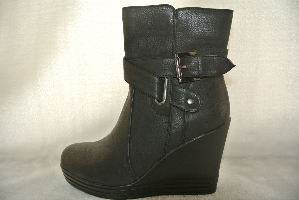 大量库存现货 休闲时尚短靴 坡跟侧拉链 高跟单排扣短靴