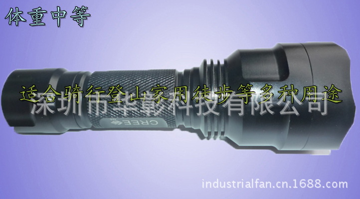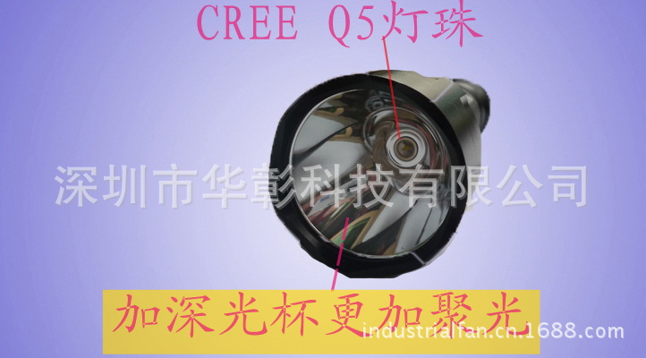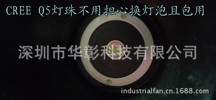 4.采用1节18650电池驱动,携带方便,适应多种情况下的亮度选择,是目前最眩的可携式户外照明产品,美国进口CREE Q5 灯珠寿命高达10万小时以上