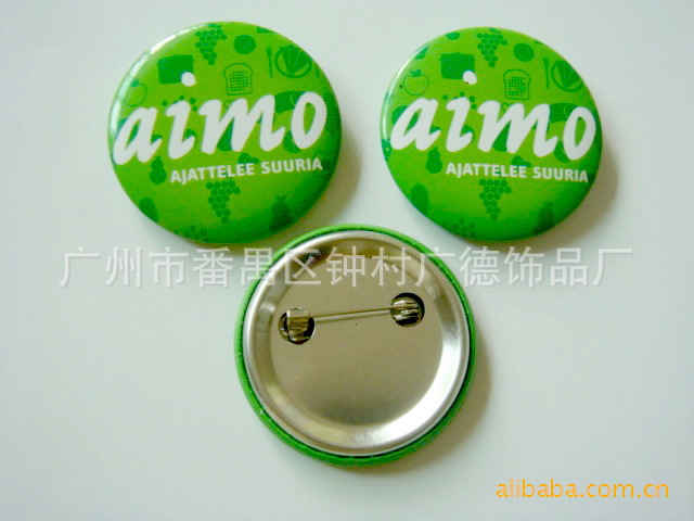 材质 | 铜板纸印刷+马口铁+塑料底+安全别针 | 包装 | PP袋单独包装,1000pcs/箱 |
