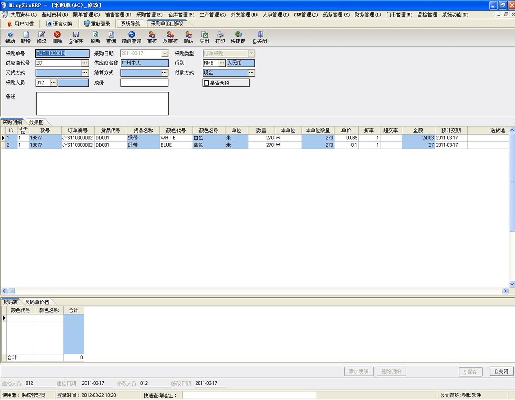 等! 软件功能模块:共用资料、基础资料、跟单管理、采购管理、仓库管理、销售管理、生产管理、裁