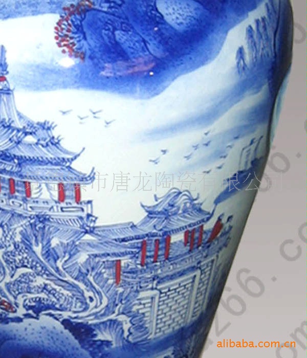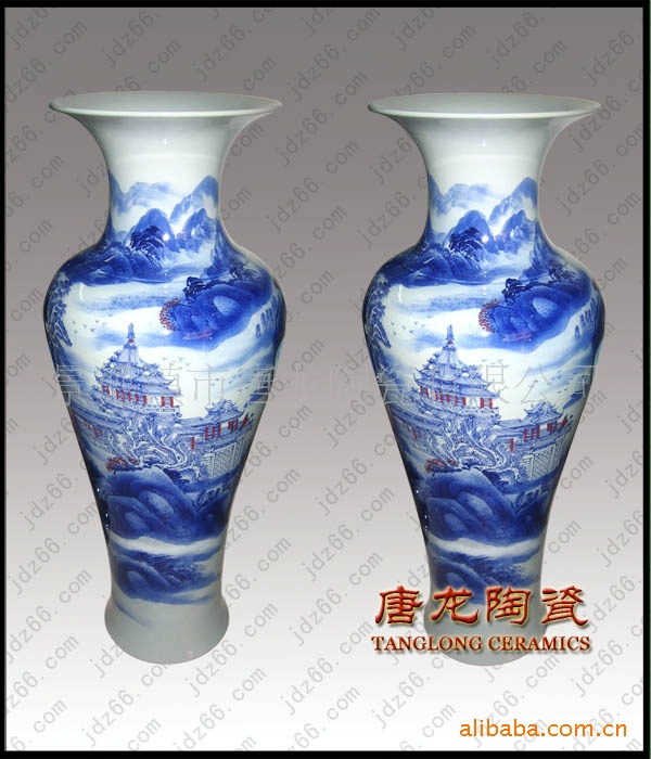 陶瓷大花瓶多用于大厅、门厅、客厅等摆设,主要用于开业礼品,大楼建筑落成、工程竣工开业、奠基典礼、酒店宾馆陈设、企事业单位乔迁、周年纪念、学校校庆、搬迁新居等。有特殊需要,在大花瓶身上可烧制LOGO、公司名称、人名、赠言,纪念用语,年月日等。全手工绘制,高白泥手工拉胚,高白釉上底色。陶瓷大花瓶要经过淘泥、摞泥、拉坯、修坯、绘画、上釉、烧窑、成瓷等近七十道工艺才能制做完成。