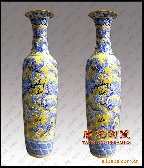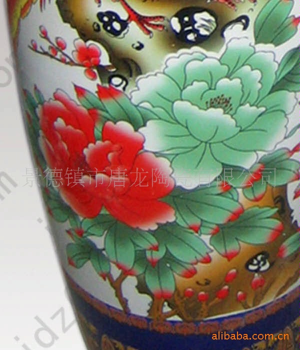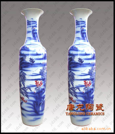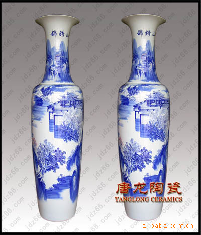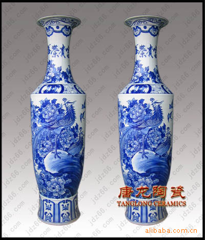 陶瓷大花瓶多用于大厅、门厅、客厅等摆设,主要用于开业礼品,大楼建筑落成、工程竣工开业、奠基典礼、酒店宾馆陈设、企事业单位乔迁、周年纪念、学校校庆、搬迁新居等。有特殊需要,在大花瓶身上可烧制LOGO、公司名称、人名、赠言,纪念用语,年月日等。全手工绘制,高白泥手工拉胚,高白釉上底色。陶瓷大花瓶要经过淘泥、摞泥、拉坯、修坯、绘画、上釉、烧窑、成瓷等近七十道工艺才能制做完成。