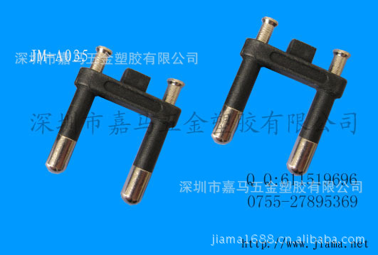 嘉马电子生产各国插头插脚AC骨架系列:欧式内架‖法式内架法国插头‖南非内架‖荷兰内架插头‖国标非标欧洲内架‖欧规火牛充电头‖韩国架‖意大利插头‖ 巴西插头‖电工插头‖高台充电器火牛架‖欧洲焊架‖中东插头‖英规头‖英式BS插头AC插片系列:澳大利亚插头‖澳规插头‖澳式包胶片‖美规插片‖美式插片‖国标插片‖国标长城片 国标电源极性插片‖美标插片电源配件系列:品字尾方管端子‖米老鼠端子‖八字尾端子‖2.35公母端‖DC端子‖DC插头,耳机插头,RCA莲花头。 各种插头内架,塑胶支架,品字尾内架‖国标内胆内架‖美规三芯内膜内卡‖美式澳规SAA内架