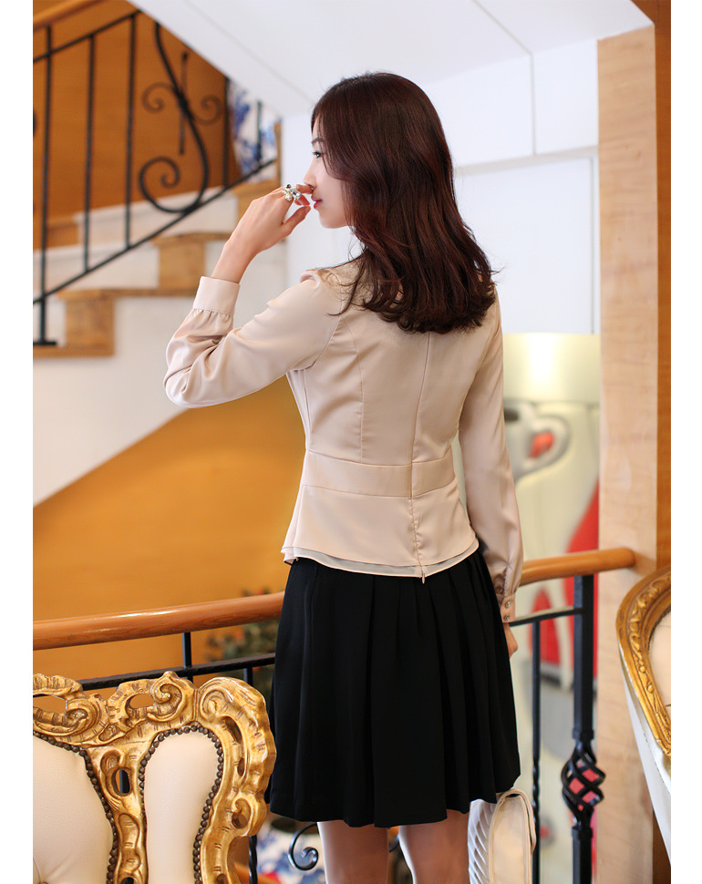 B,精致剪裁:别致剪裁与拼接工艺赋予新颖的式样,修身更时尚,拉长上下身线条比例。