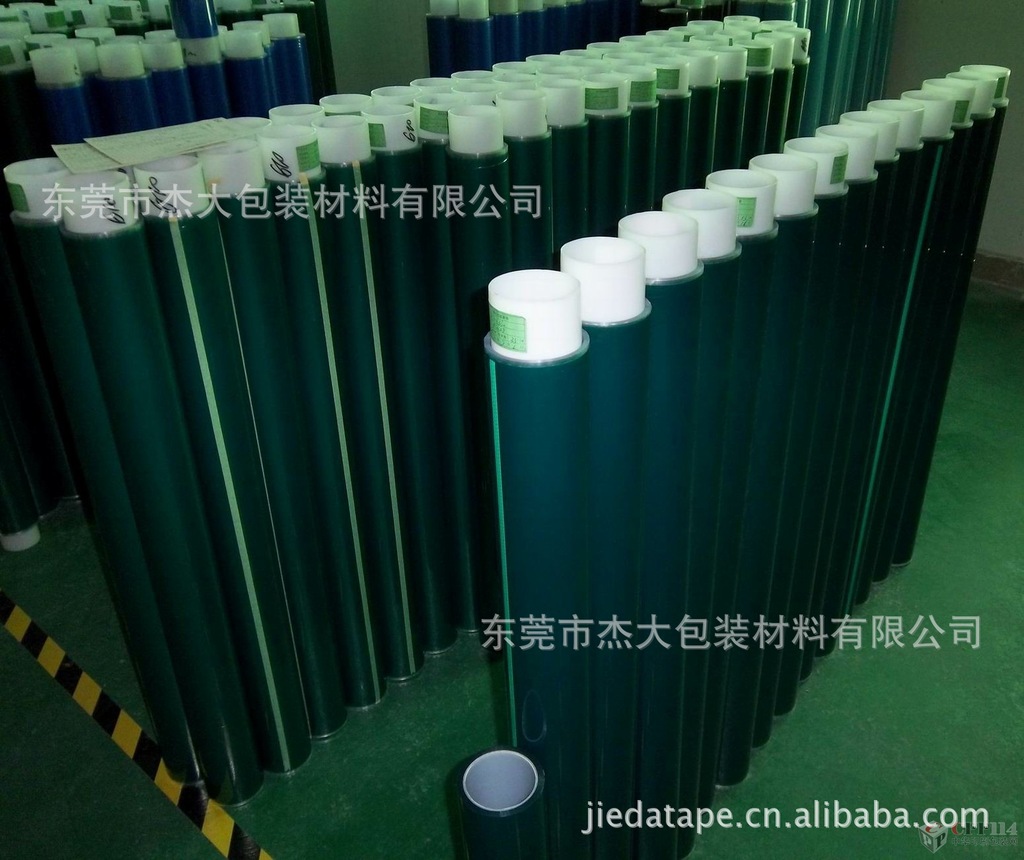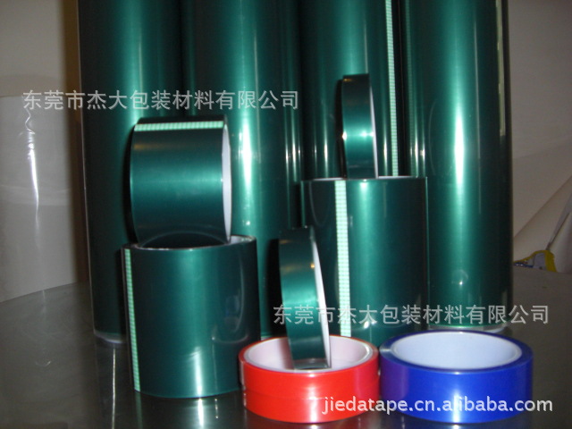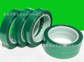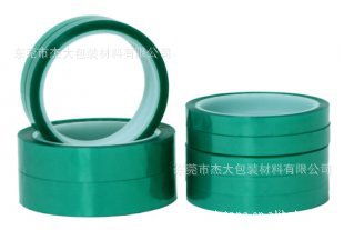 PET绿胶带又称喷涂胶带,是以PET聚脂薄膜为基材,涂以进口有机硅胶,具有出色的耐高温性,附粘着性,耐溶剂性等。 使用范围:-20℃-220℃。 规 格:长33M、 66M 200M(长度,宽度可依客户需求定制) 总厚度: 0.05mm. 0.06mm 0.085mm 用 途:主要用于粉末喷涂,高温遮蔽,镀金保护。
