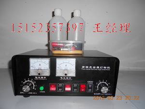 该设备是利用电化学腐蚀原理在多种金属上打印标识,如不锈钢、碳钢、各种合金钢、工具钢、硬质合金、铝合金、各种镀铬、镀锌材料、各种磨削、抛光金属表面等。适用于打印徽标、产品名称、技术指标、厂商名称、安全事项、以及制作高档不锈钢标牌,外壳打标等。