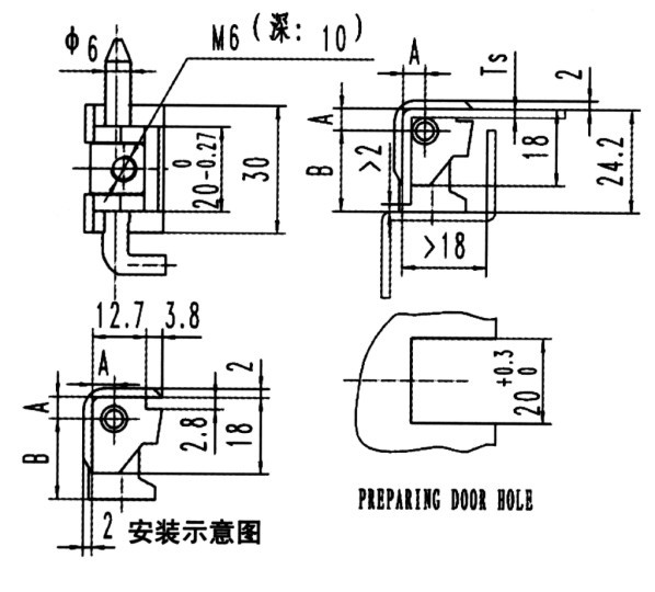 内侧面固定门板,门板转动角度,越180度型号:CL230