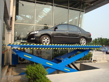 平台部分:是承载重物的钢结构平台,有封闭式(即轿厢式)或敞开式,两侧装有导向滚轮,平台底部可联接升降油缸或联接升降剪叉形钢架: