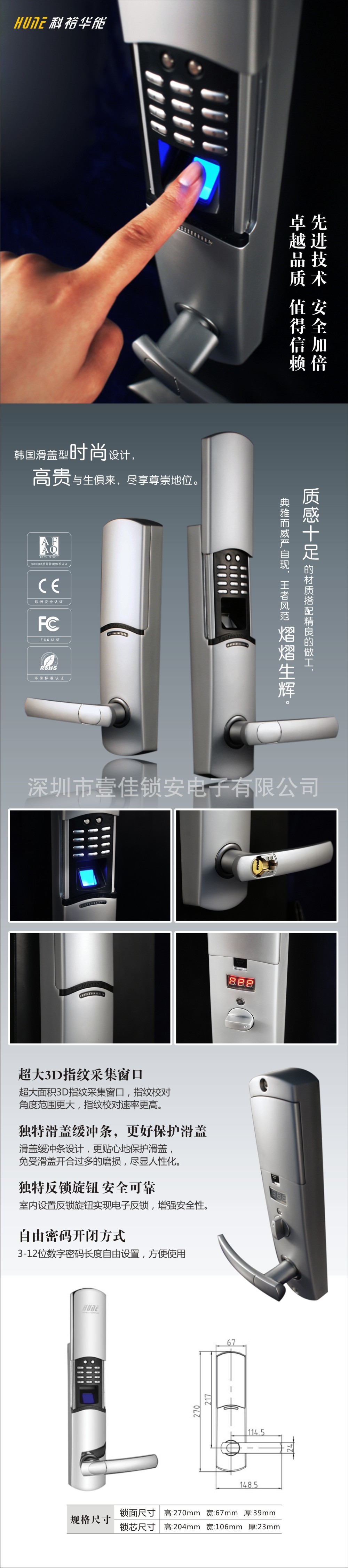 产品类别:指纹锁+密码锁/密码+感应卡锁产品型号 :9000(RL-2-F)(指纹+密码)