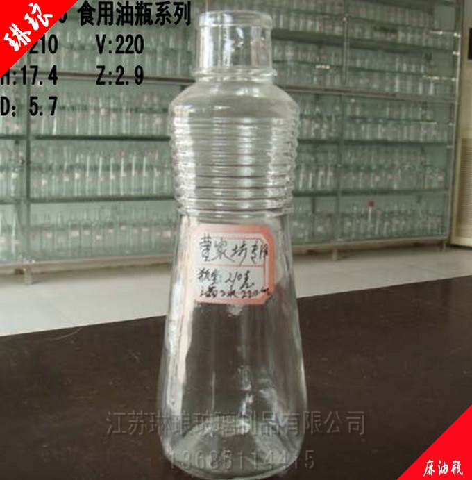 厂家供应各种规格的香油瓶、麻油瓶、橄榄油瓶等玻璃油瓶。江苏琳琅专业生产高白料玻璃!