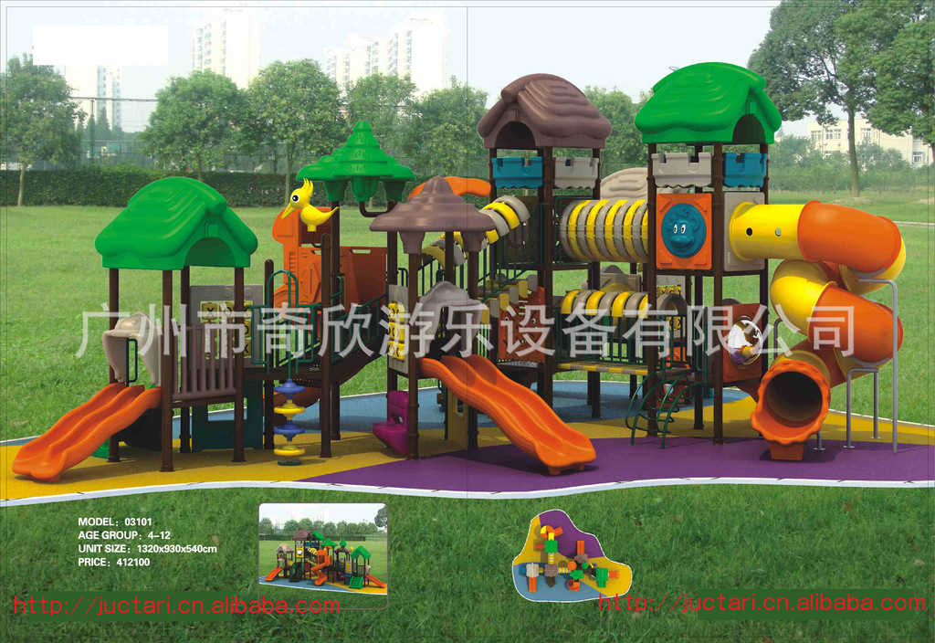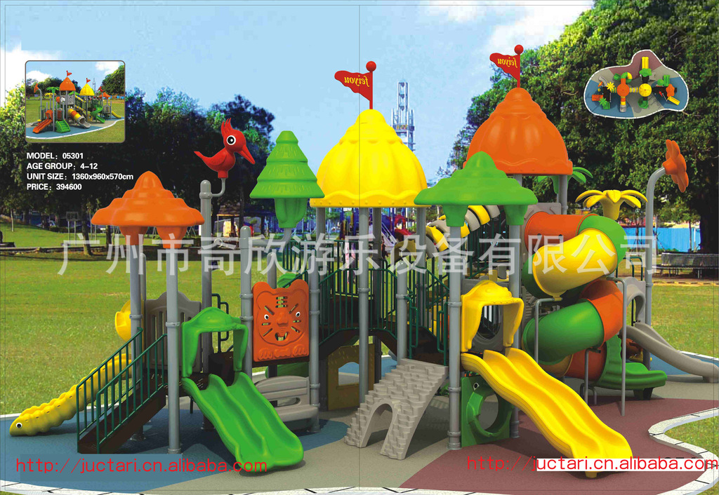 10、工艺:产品铁件经防锈除油后喷漆喷粉,采用高温电磁烤漆工艺,防锈性能特强,游戏平台是全片式碳素钢板冲压成形,平台表面钻小孔具有防滑作用,游戏架滑梯及钻桶类均由进口食品级塑料经先进的真空滚塑成型技术铸造制成,它们均含有防静电及防紫外线成份,色彩恒久。