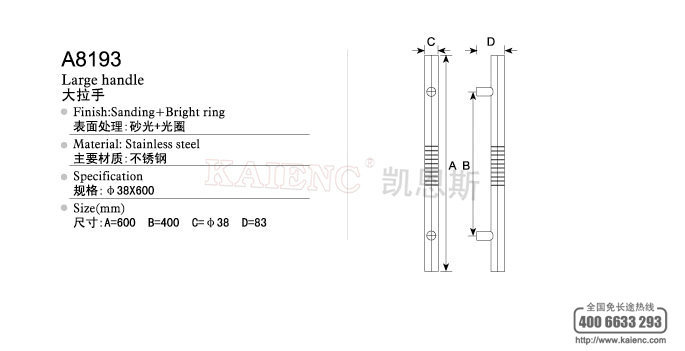 304不锈钢大拉手大拉手批发生产厂家A8176 KAIENC凯恩斯