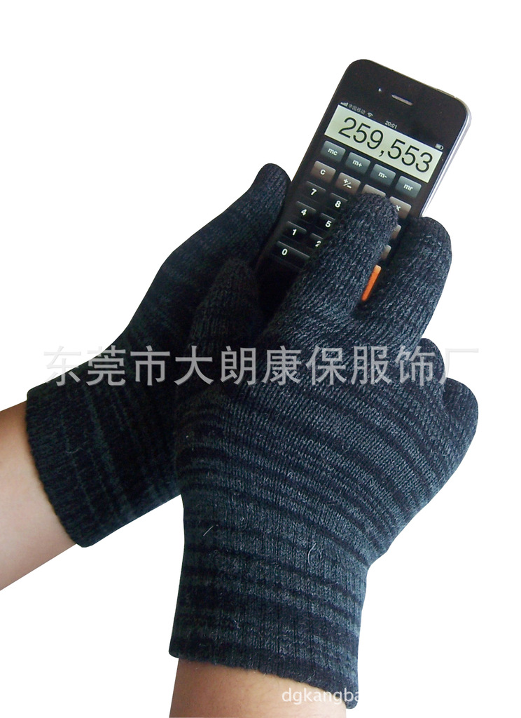 电容触摸屏指尖式专用触摸手套康保服饰厂专业生产,睛纶、全棉、羊绒、绦纶、等各种材料都有,各种款式:提花、间色、印花等款式多样的触摸屏手套,冬天穿戴不用脱去手套就可以接听电话及发送信息,保暖舒适透气,本产品支持当今世界上所有的电容触摸屏手机,触摸屏平板电脑等,认准品牌认准品质欢迎订做,工厂联系资料:0769-81062883/81114618段小姐13450665429/舒先生15917710232 邮箱:kangbao888@网址: