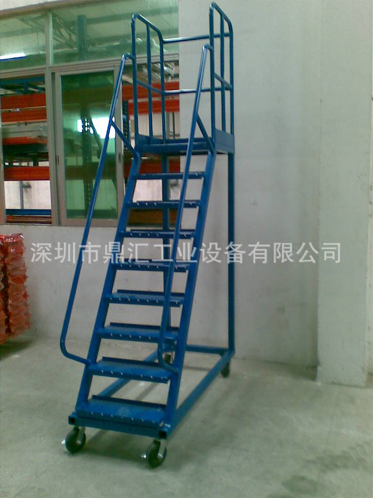 2、登高梯(车):采用高强度方管、角铁、钢管做为机架,防滑花纹钢板做为台阶制造而成。