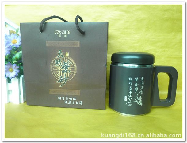 紫砂杯外壳选用高档的优质不锈钢精制而成,配合以天然的紫砂内胆,集绿色健康、豪华稳重、高贵大方为一体,是您居家旅行的最佳伴侣。