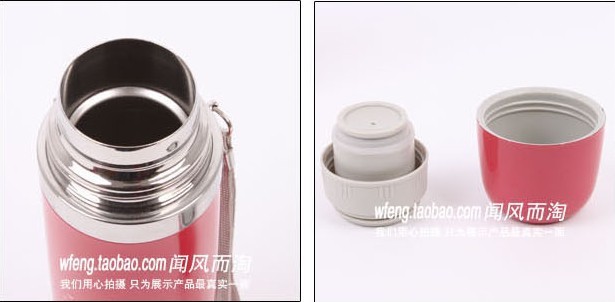 2、 密封性能识别法:在杯加水后,按顺时针方向旋紧瓶塞和杯盖,把杯平放在桌面,应无水渗漏;杯盖与杯口的旋合应灵活,没有间隙。
