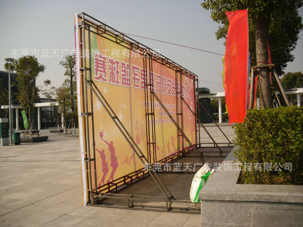 行架 即 广告用支撑架,一般由钢结构制作,尺寸可根据主体所需尺寸进行制作,具有一定物理承重性,可作为简易广告宣传栏,室外舞台搭建背景等宣传工具,我司面向长安,可提供画面设计制作,行架出租安装等一条龙服务,行架规格可自定义