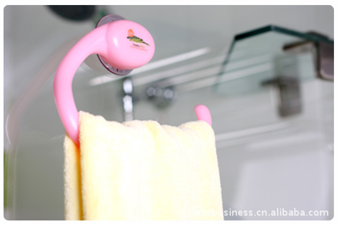 非常简约、时尚的毛巾挂。L形,吸盘式设计,采用新一代吸盘,安装无须打孔,破坏墙体,不用粘胶影响墙体美观,可随时任意变换安装地方,主要装在磁砖、不锈钢面、玻璃面等光滑面上,不可装在粗糙的木板或墙面上。