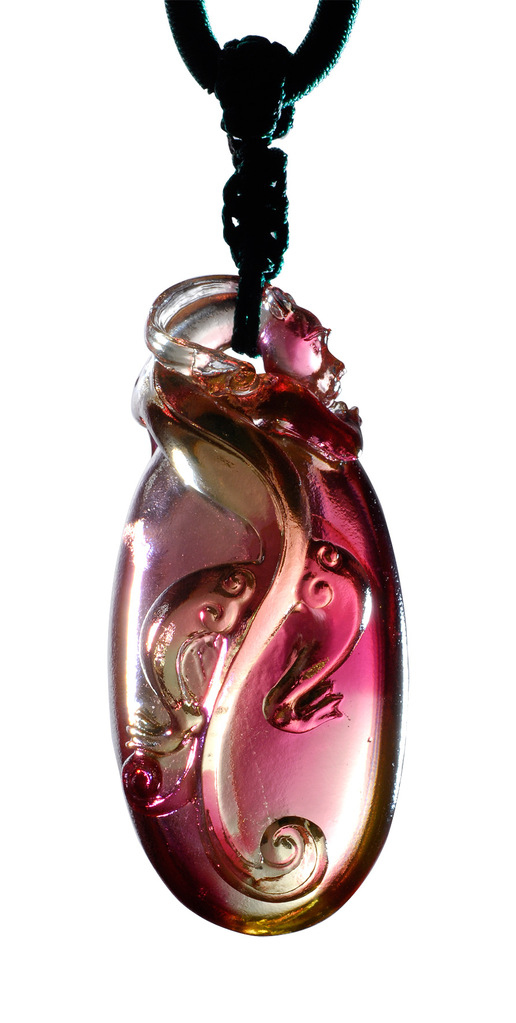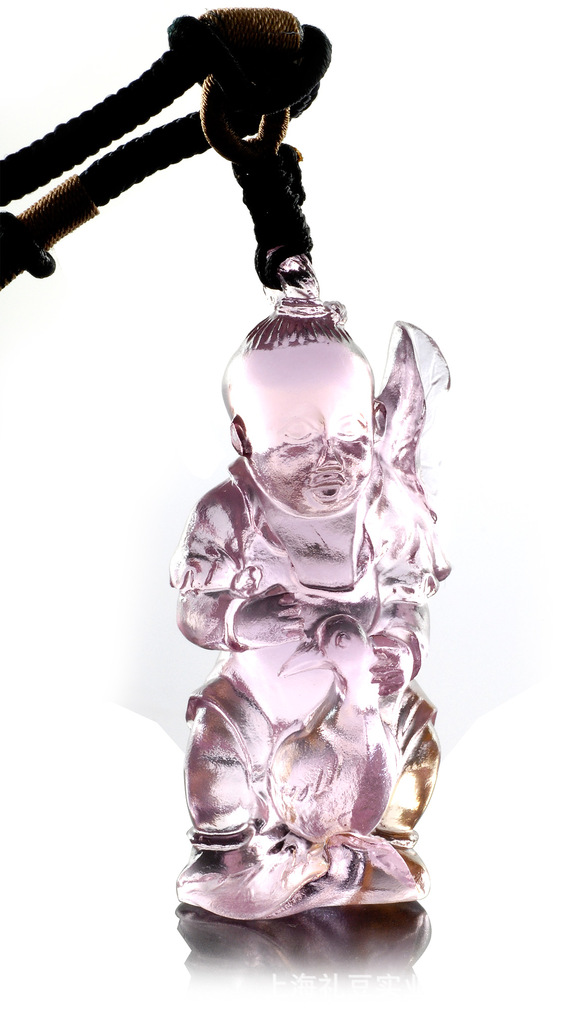 琉璃,亦作“瑠璃”,是指用各种颜色的人造水晶(含24%的二氧化铅)为原料,采用古代青铜脱蜡铸造法高温脱蜡而成的水晶作品。其色彩流云漓彩、美轮美焕;其品质晶莹剔透、光彩夺目。这个过程需经过数十道手工精心操作方能完成,稍有疏忽即可造成失败或瑕疵。